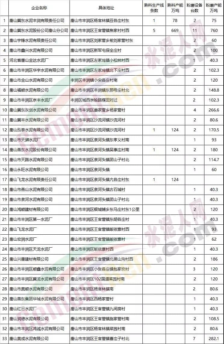 部分水泥生产企业名单