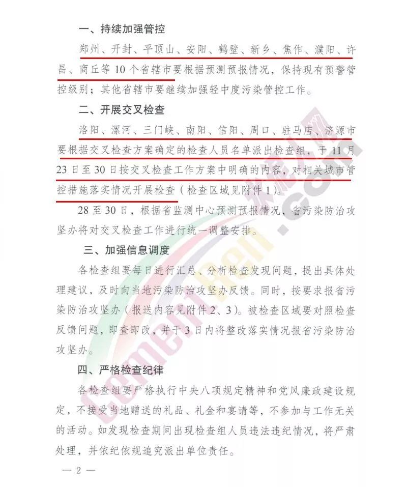 为确保各地各项管理措施落到实处,有效减轻污染天气影响,根据《河南省2018-2019年秋冬季重污染天气应对交叉检查工作方案》,就加强重污染天气应急管控及开展第一轮交叉检查工作。