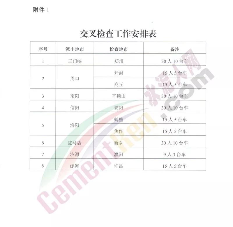 洛阳、漯河、三门峡、南阳、信阳、周口、驻马店、济源市要根据交叉检查方案确定的检查人员名单派出检查组,于11月23日至30日按交叉检查工作方案中明确的内容,对相关城市管控措施落实情况开展检查(检查区域见附件1)。