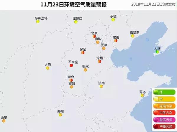 经中国环境监测总站会商京津冀及周边地区省级环境监测中心,受不利气象条件影响,叠加冬季供暖等污染排放因素,预计2018年11月23日至26日期间,京津冀及周边地区将出现区域性重污染天气过程。影响范围包括京津冀中南部、山西南部、山东中西部和河南北部。