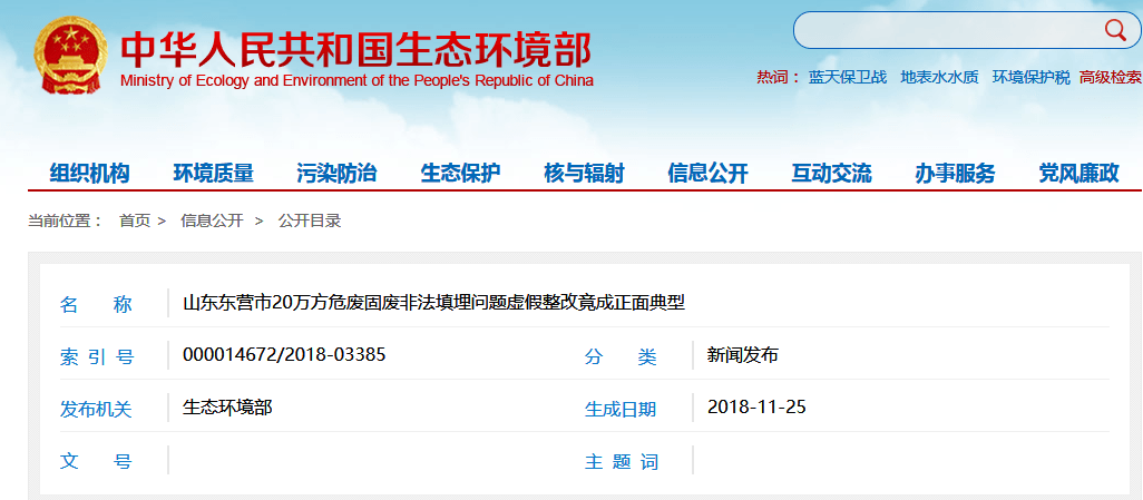 山东东营市20万方危废固废非法填埋问题虚假整改竟成正面典型