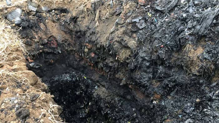 督察发现,该非法填埋场长400余米,宽约60米,深度在10米以上,填埋量达20万立方米左右,不仅填埋了大量生活垃圾,还混杂填埋医疗废物和工业危险废物。2018年11月15日,督察组随机选取7个点位进行挖掘,发现填埋物多呈黑褐色,并伴有强烈刺鼻气味。经专业机构取样鉴别,因生活垃圾与危险废物混杂填埋,填埋的废物均具有危险废物特性。