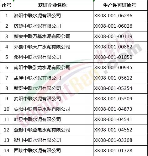 14家水泥企业名单