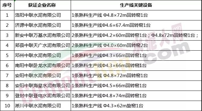 中联水泥河南运营区熟料生产线一览