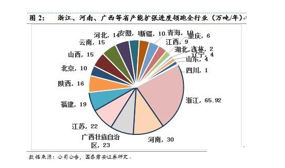 先天条件决定了水泥窑协同处置工艺的产能释放速度快 审批周期短:由于危废协同处置的设施直接建设在水泥厂内,而水泥厂本身卫生防护距离800米,群众阻力较小,不存在选址难度。水泥窑协同处置危废项目,从项目备案到最终投运,周期在2-3年之间,较之传统焚烧节约3年左右时间。 单体项目产能规模大:目前参与协同处置改造的水泥窑,水泥产能规模普遍为5000t/d,对应危废产能一般为10万吨/年,单体规模相当于传统专业焚烧炉的5-10倍,显著提升了产能扩张速度。 工程改造+爬坡周期短:水泥窑协同处置的改造,主要包括工程改造和运行爬坡两方面,整体改造周期约为8-9个月,建成之后项目爬坡周期较短,产能释放速度快。而传统危废无害化处置项目一般需要2-3年建设期和1-2年的产能爬坡期。例如,金隅红树林的广灵金隅项目自6月12日项目组进厂服务,同年11月7日即取得危废经营许可证,原计划8个月的施工建设+取证周期被缩短至5个月完成,创造了业界最快的施工和取证速度记录。 1.2浙江、河南、广西、江苏与福建领跑,合计市占率达56% 截止目前我国已有20个省份(或直辖市)存在水泥窑协同处置危险废物的产能,其中产能规模居前的省份包括:浙江(66万吨/年)、河南(30万吨/年)、广西(22万吨/年)、江苏(22万吨/年)与福建(19万吨/年),规模前五名的省份,合计规模占比全国56%。而广东、上海和湖南等工业相对较为发达的区域,尚未有水泥窑协同处置危废项目投产,未来空间仍较大.