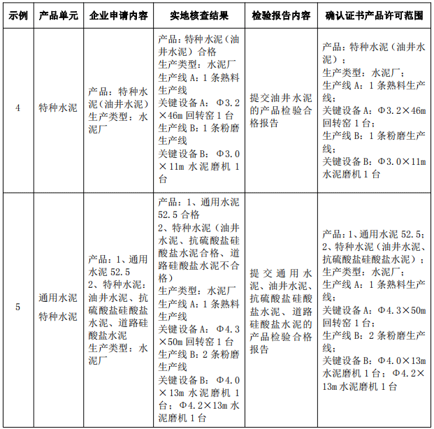第十六条 水泥产品生产许可范围的判定原则及示例:
