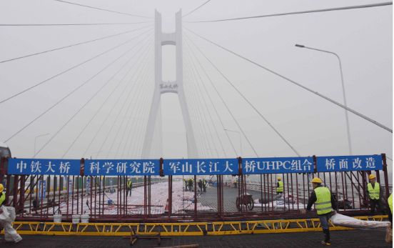 长江云报道 11月29日下午,落户于中铁大桥局的桥梁结构健康与安全国家重点实验室近年来的重要成果之一——超高性能混凝土在武汉军山长江大桥铺装完成,它将帮助军山长江公路大桥实现桥面与桥梁主体结构同寿命。