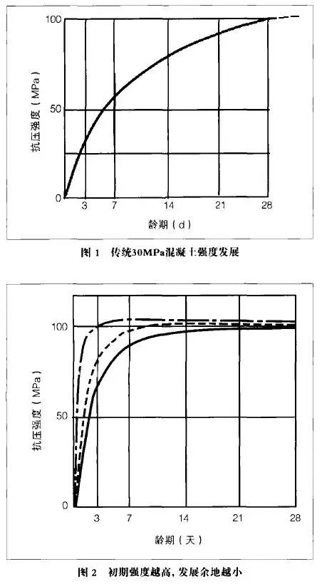 图1是传统的混凝土强度正常发展规律:相对于28天的100%,3天约30%;7天约60%。