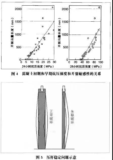 3)凡是提高早期强度的措施对混凝土后期性能都会有损害,这已是国内外专家的共识。前RILEM主席、德国混凝土专家RupertSpringenschmid证明控制混凝土12小时抗压强度不超过6MPa,就可以避免混凝土的早期开裂;我国混凝土专家黄士元经过试验得出结论:可用混凝土24小时抗压强度不超过12MPa来控制混凝土的早期开裂(见图4)。