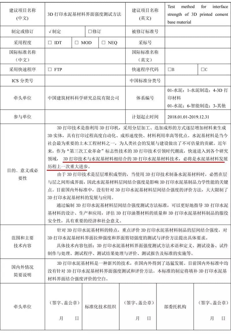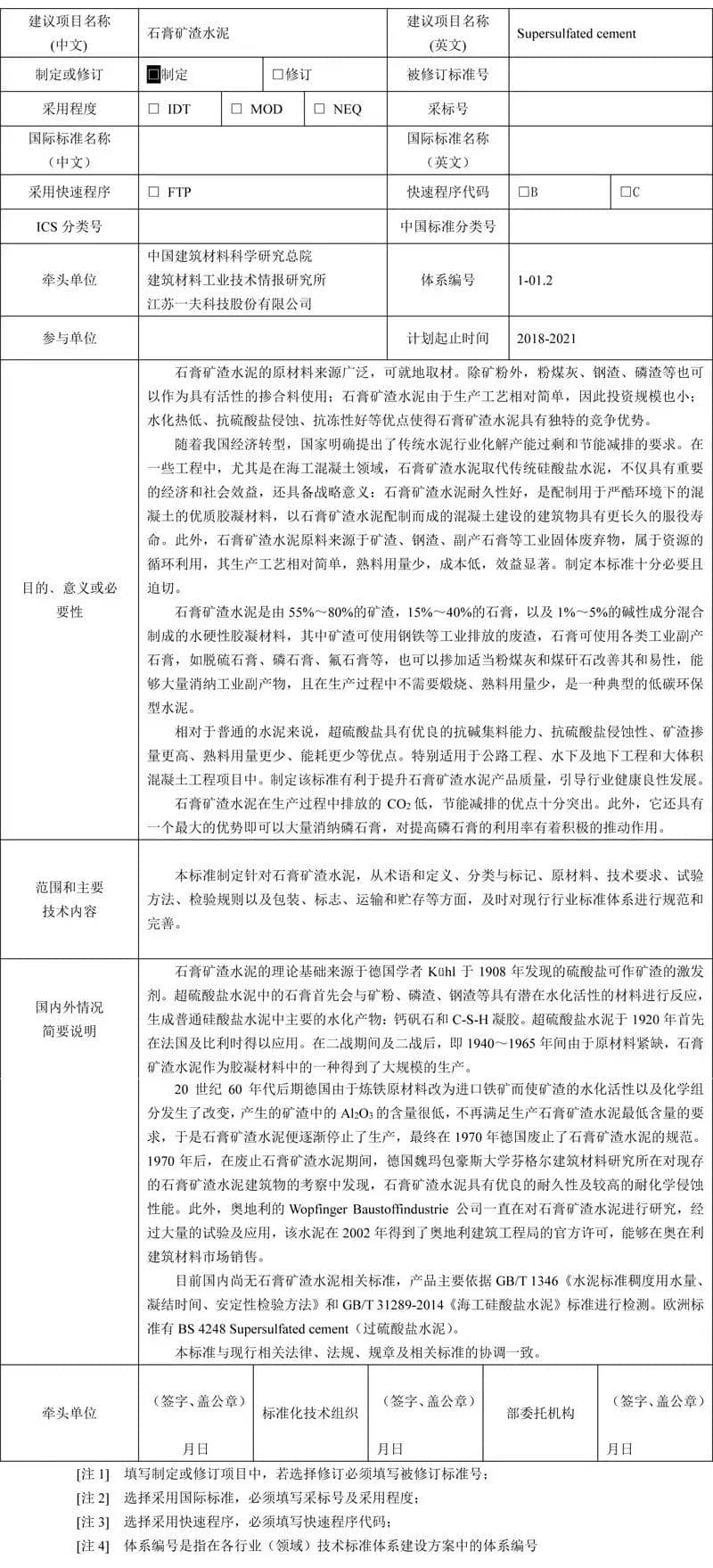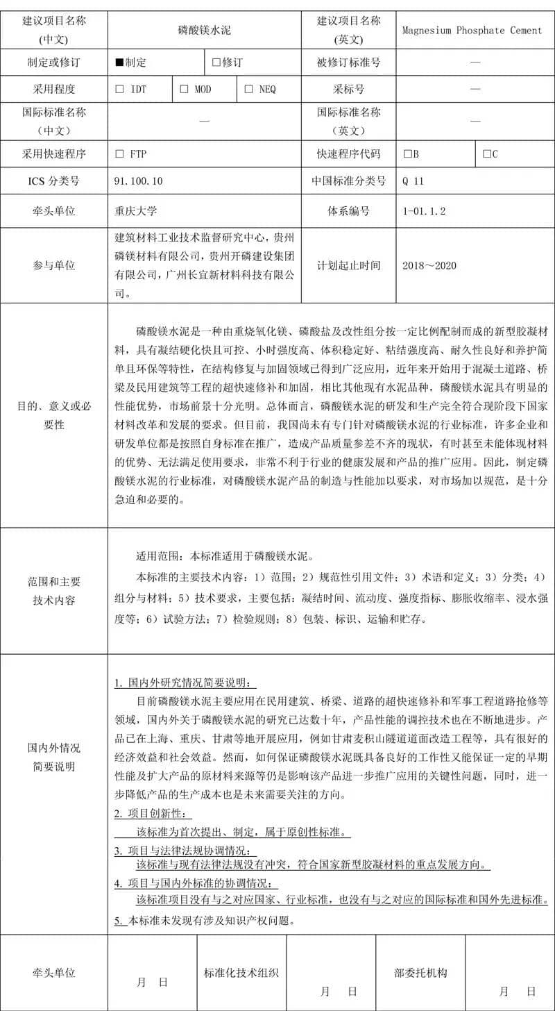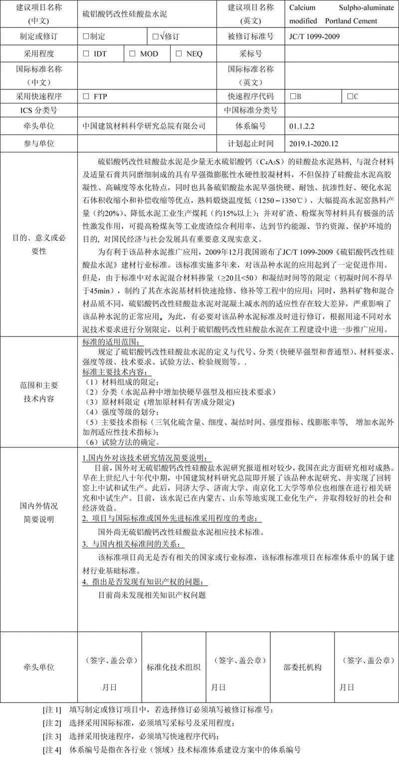 泥行业标准项目建议书