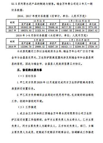 瑞金万年青水泥防护距离内居民搬迁协议公告