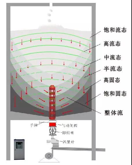 显然,如果用西方一贯的刚性外科手术思路,无论是外加气动,电动还是液压动方案,在库内成千上万吨料压环境下要达成上述整体流目标根本就是死路一条。