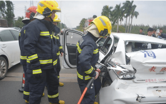 12月9日15时20分,海口市消防支队119指挥中心接到群众报警:位于海口市白驹大道文昌往海口方向发生一起交通事故,有人员被困,请求救助。接到报警后,指挥中心立即调派琼山消防大队国兴中队2辆消防车11名消防员赶往现场。