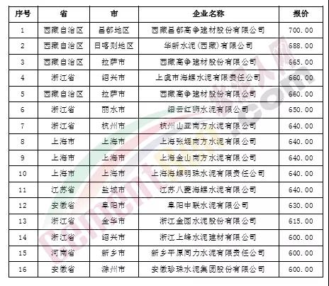备注:上述报价数据为水泥人网信息中心人工采集,如与实际成交价格不符,请以实际成交为准。更多企业报价数据请联系我们。