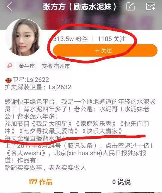 自己都是努力工作才有现在的成就,不愿意接受别人的诋毁。看到这些,你们是不是也都迷茫了呢?现在到底该相信谁呢?现在水泥妹在快手上已经有300多万的粉丝了,但是她前一段时间被各大媒体批评。