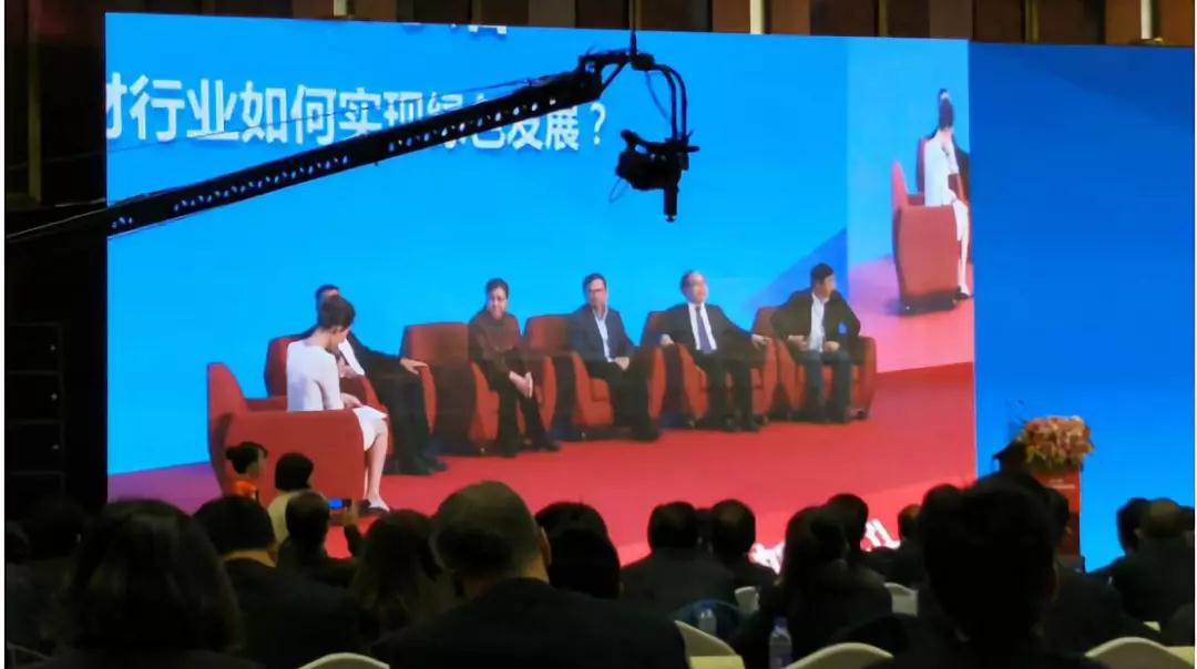 北京大学国家竞争力研究院院长郭云涛、中国建材集团有限公司总工程师、中国建筑材料科学研总院院长姚燕、华新水泥股份有限公司总裁长李叶青、上海建材(集团)有限公司总裁赵健、中国水泥协会常务副会长孔祥忠针对“建材行业如何实现绿色发展”展开讨论。