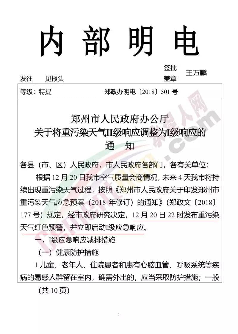 按照《郑州市人民政府关于印发郑州市重污染天气应急预案(2018年修订)的通知》(郑政文〔2018〕177号)规定,经郑州市政府研究决定,12月20日22时发布重污染天气红色预警,并立即启动Ⅰ级应急响应。据悉,这是今年秋冬郑州市启动的第一个红色预警。通知提出工业污染源、移动污染源以及其他污染源减排相关措施方面: