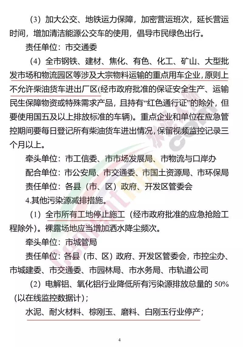 其他污染源减排措施。全市所有工地停止施工,水泥、耐火材料、棕刚玉、磨料、白刚玉行业停产;