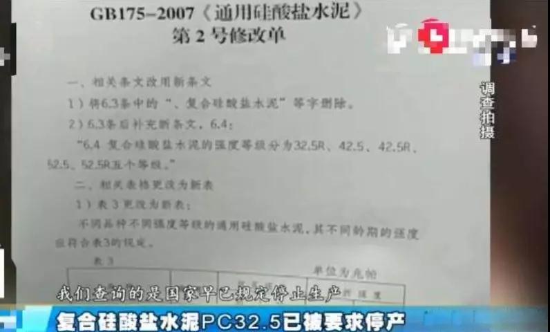 经销商将生产水泥的厂家地址告诉了董大哥,董大哥随即赶到水泥厂一问究竟。面对记者的采访,水泥厂的工作人员坚称自己买的水泥属于合格产品并向记者展示了存放在仓库的产品,见到水泥后记者发现这里的水泥型号和董大哥家的基本一致,但是有一个细节让记者发现了问题,就是产品的型号变成了“PC32.5R”,记者再一查询得知,这一型号的水泥与董大哥家里的“PC32.5”并不一样,董大哥家的早在2015年就已经停产,而现在的这个型号要到2019年12月份才会到期停产。因此,一番查询下来董大哥家的房屋会出现问题,原因还在水泥上。