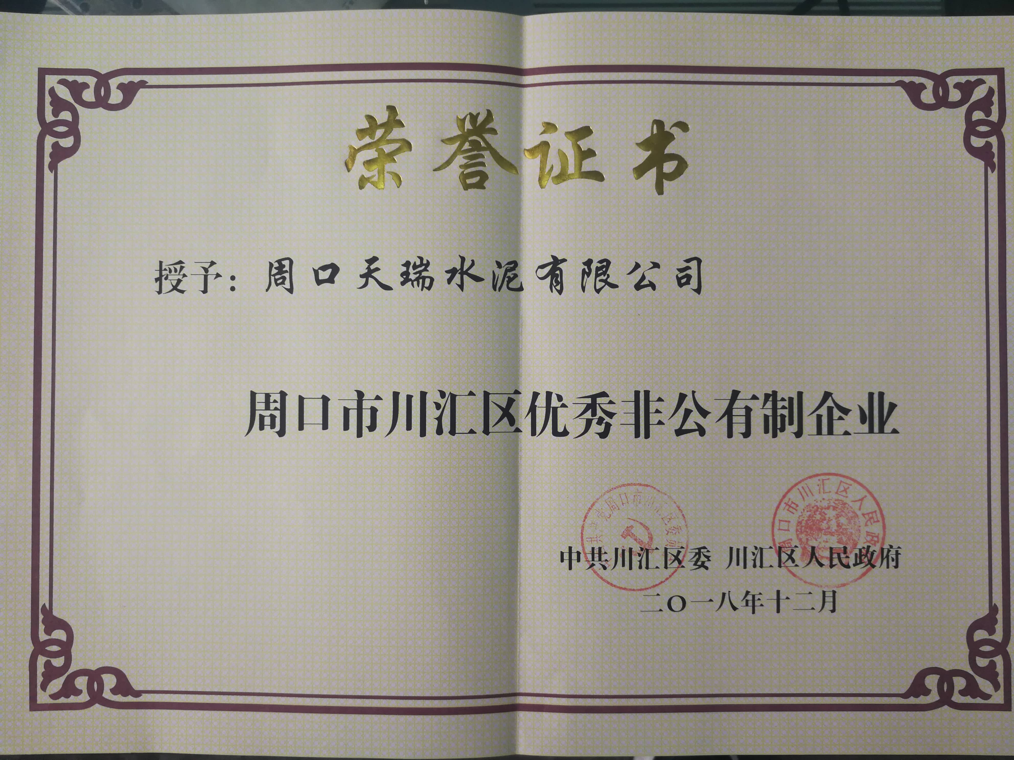 12月21日,在周口市川汇区区委、区政府召开的“促进非公有制经济健康发展表彰大会”上,天瑞周口水泥公司被区委、区政府授予“周口市川汇区优秀非公有制企业”荣誉称号。