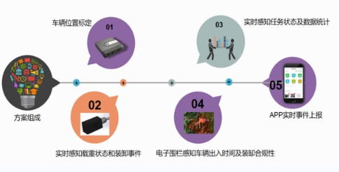 首先,智能热点标定可以实时感知车辆所处位置;其次,载重自动感知可以精确识别水泥的装卸货事件,对货物在哪里装卸全程监控;最后,运输任务可视化解决了货物流向的目标监控,建立一站式的信息化管理。