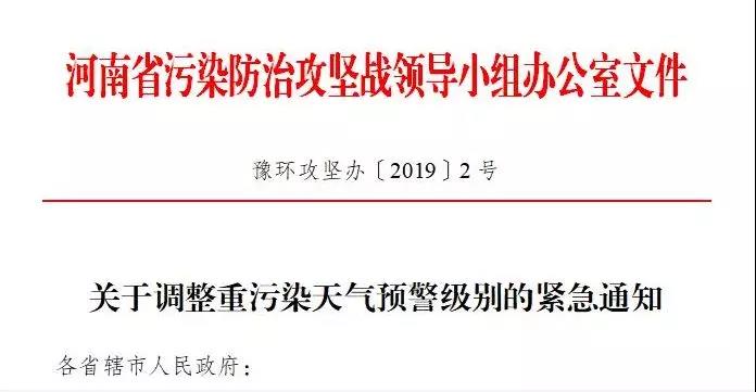 为加强联防联控,减轻区域重度污染程度及缩短持续时间,保护人民群众身体健康,省污染防治攻坚办研究决定:请郑州、开封、平顶山、安阳、濮阳、许昌、漯河、三门峡、周口、驻马店、南阳、济源12市于1月4日18时升级为重污染天气红色预警及Ⅰ级响应,其他6市继续实行重污染天气橙色预警及Ⅱ级响应。
