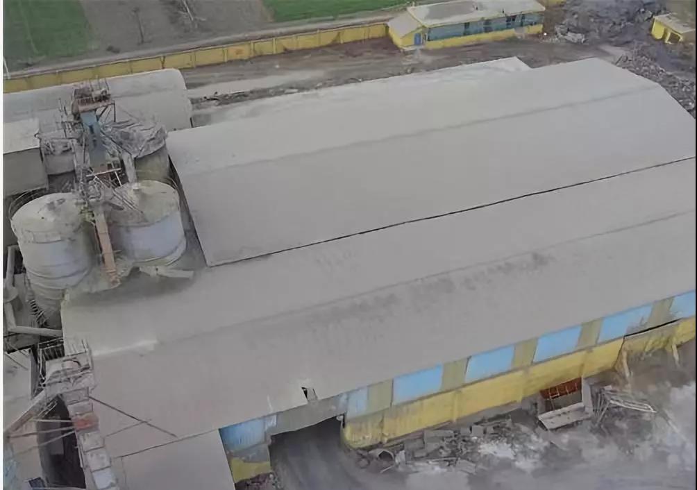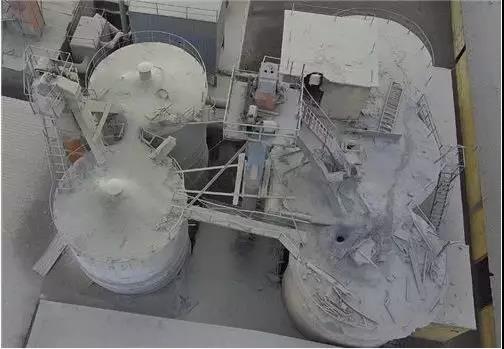 记者用无人机对该企业进行了航拍,发现该水泥厂的厂房已经布满了一层厚厚的粉尘,罐顶上所落下的粉尘更是让人触目惊心,罐顶排放粉尘的排污口更直观的反映出平时所排放粉尘的状况。