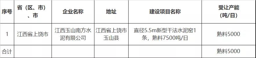 熟料产能指标出让公示》公示称, 根据《浙江省部分产能严重过剩行业产能置换实施细则》,将常山南方水泥有限公司、江山南方水泥有限公司熟料产能指标出让情况予以公示。