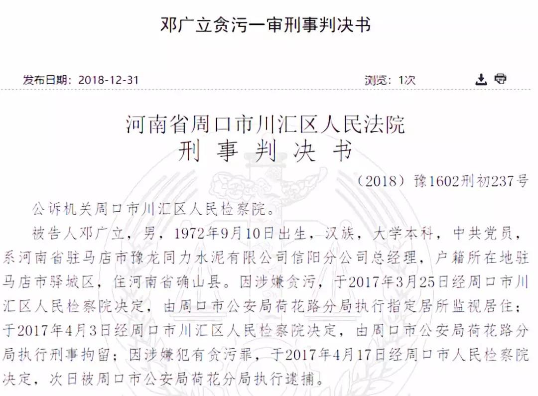 2017年3月25日,邓广立因涉嫌贪污,被指定居所监视居住,2017年4月3日被刑事拘留。邓广立犯贪污罪,判处有期徒刑一年八个月,并处罚金人民币十五万元。非法所得12.78万元应当予以追缴,上缴国库。