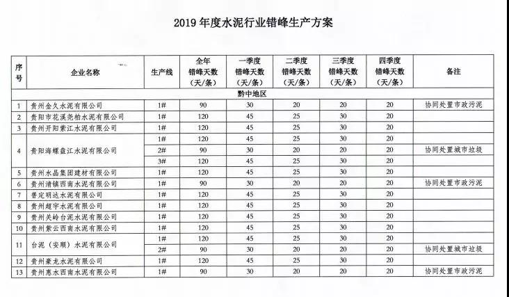 日前,贵州省工业和信息化厅与贵州省生态环境厅联合发布《关于做好2019年度水泥行业错峰生产的通知》。