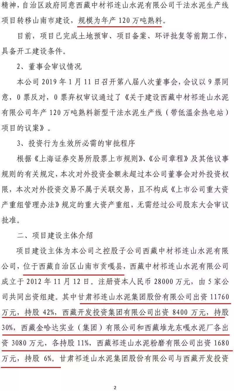 该项目建设主体西藏中材祁连山水泥,位于西藏自治区山南市贡嘎县,西藏中材祁连山水泥成立于2012年,注册资本人民币2.8亿元,由 5 家公司共同出资组建。