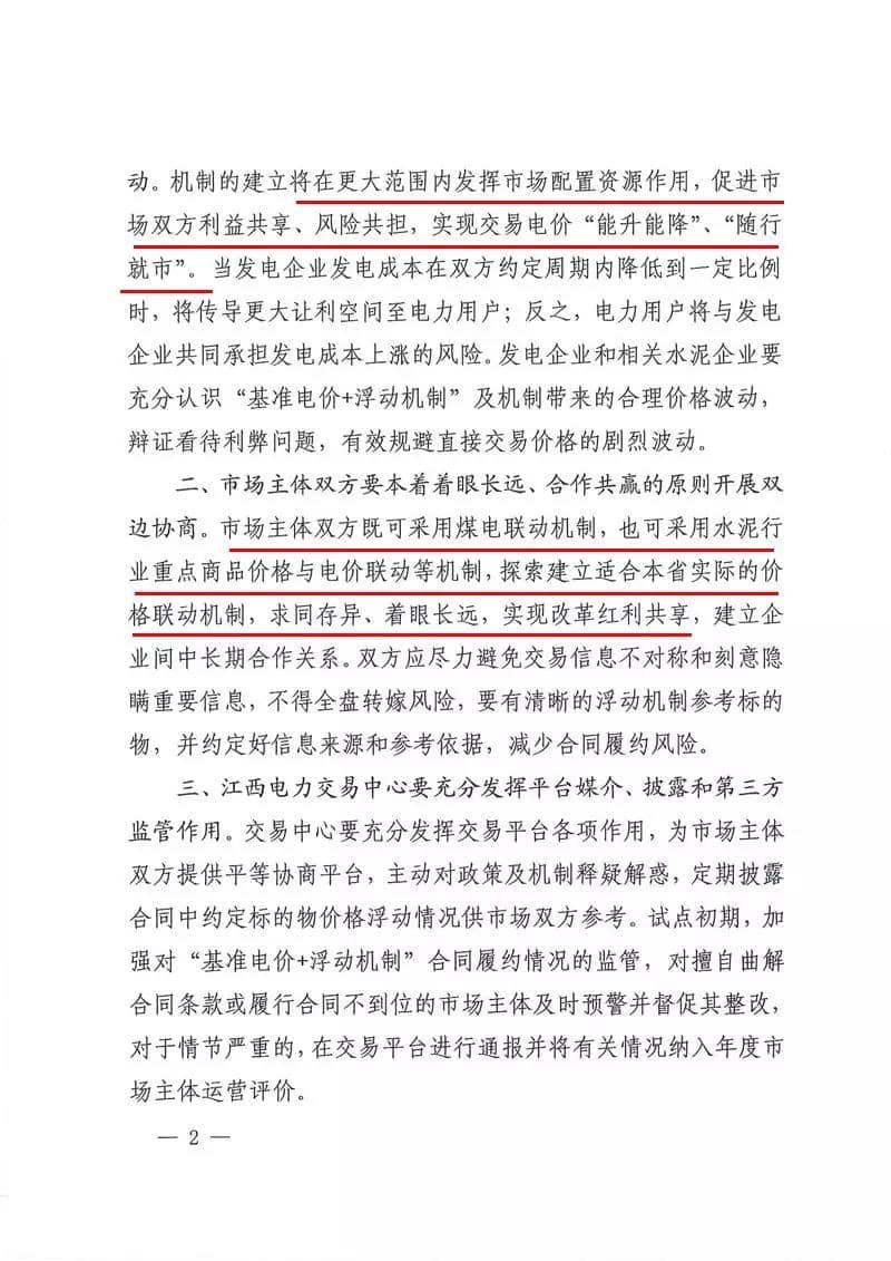 三、江西电力交易中心要充分发挥平台媒介、披露和第三方监管作用。交易中心要充分发挥交易平台各项作用,为市场主体双方提供平等协商平台,主动对政策及机制释疑解惑,定期披露合同中约定标的物价格浮动情况从市场双方参考。试点初期,加强对"基准电价+浮动机制”合同履约情况的监管,对擅自曲解合同条款或改造合同不到位的市场主体及时预警并督促其整改,对于情节严重的,在交易平台进行通报并将有关情况纳入年度市场运营评价。文件原文如下