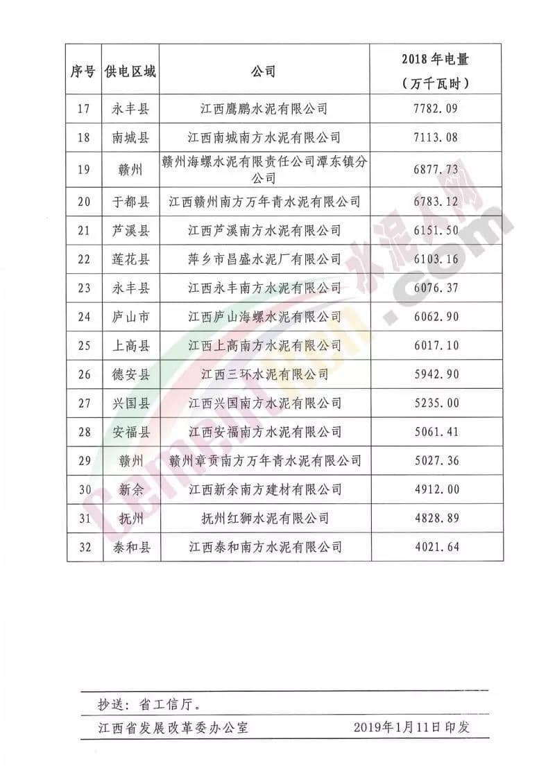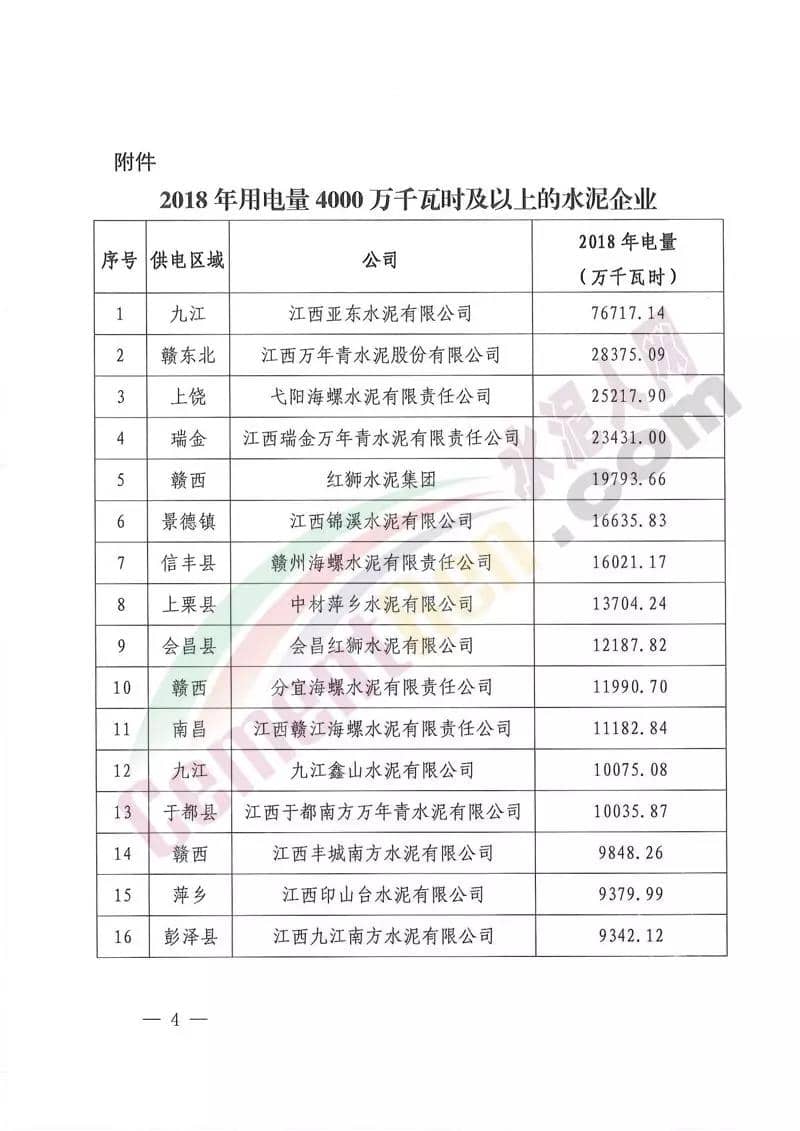 附:2018年用电量4000万千瓦时以上的水泥企业名单