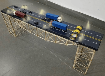 模拟了一种全新的道路概念。车辆行驶过程中的振动能量通过路面的发电装置转化成电能,可用于道路设备供电、车况检测。也可以在防止断电的意外情况。