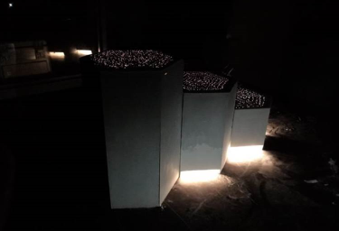 建筑材料不仅可以用来建高楼大厦,同样也能成为别具创意的家居产品。第九组以清水混凝土、透光混凝土为原材料,做出了六面体状的“水泥森林”,打破了传统混凝土给人的刻板印象,让我们知道,原来混凝土也可以巧妙地成为家庭摆件,在灯光的点缀下也能变得温暖而柔和。