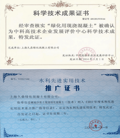 改革开放40年来,技术创新是企业不断进步的原动力。李仁从2003开始对绿化混凝土的结构原理等进行不断地深入摸索研究,解决了绿化混凝土的抗压强度、孔隙率、抗水土流失、除碱、沉浆等一系列都能影响到工程的绿化效果及工程的牢固性、稳定性等相关方面的技术难题,到2010 年正式成立上海久鼎绿化混凝土有限公司,如今公司已拥有“绿化用混凝土块的生产方法”“底柱表孔型现浇绿化混凝土”等30多项具有独立知识产权的专利, 其中7项发明专利及20多项实用新型专利,现浇绿化用混凝土制备方法和设备已申请国际专利。