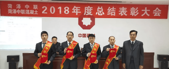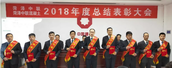 会议由菏泽中联常务副总经理成子业主持,成总首先宣读了公司表彰决定。公司研究决定,授予化验室等3个集体“2018年度先进团队”荣誉称号;授予丁传学同志“2018年度突出贡献奖”荣誉称号;授予金营等4名同志“2018年度优秀管理者”荣誉称号;授予孟伟等9名同志“2018年度优秀员工”荣誉称号。各获奖单位、个人依次上台领奖并合影留念。