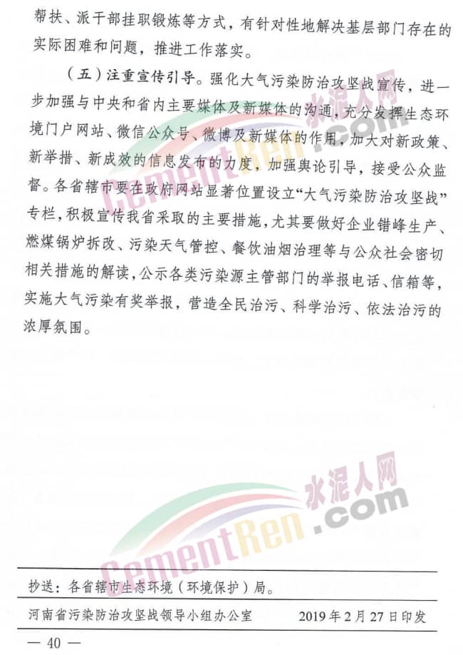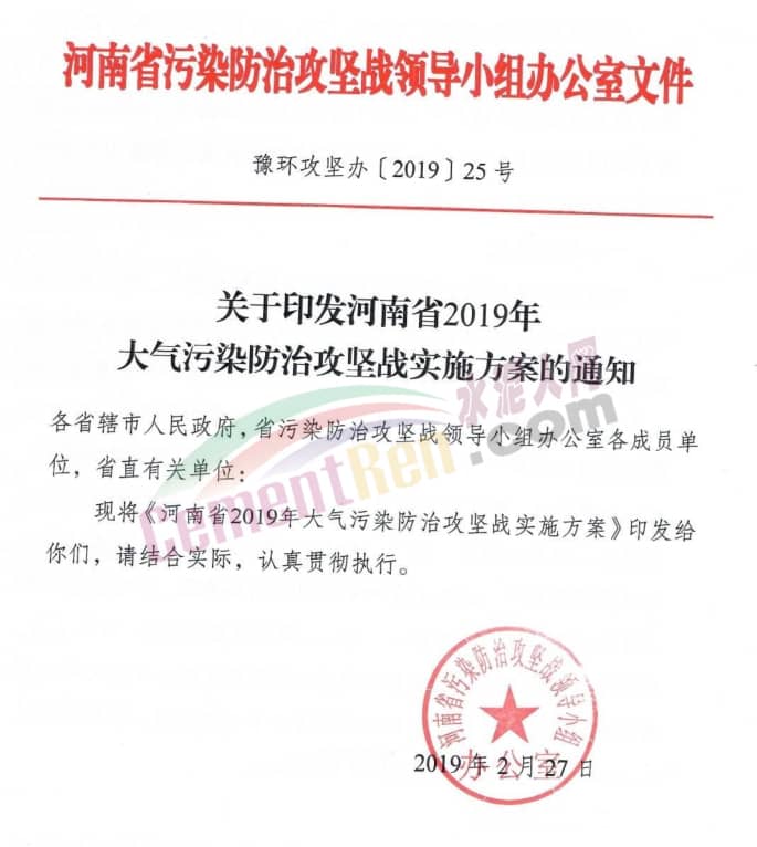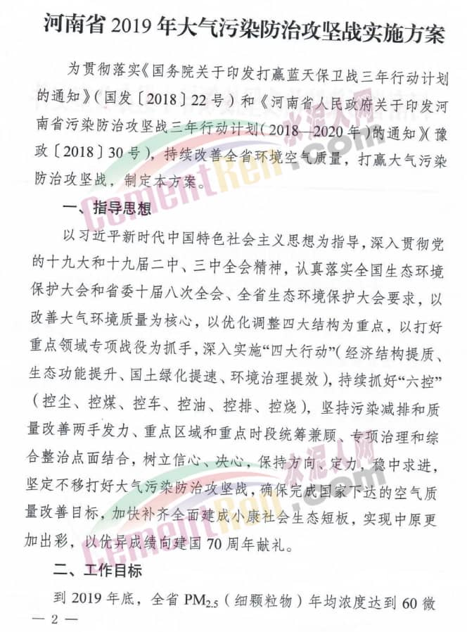 近日,河南省污染防治攻坚战领导小组办公室发布《关于印发河南省2019年大气污染防治攻坚战实施方案的通知》,该文件对于河南省水泥行业错峰生产及环保治理提出了史上最严的要求。