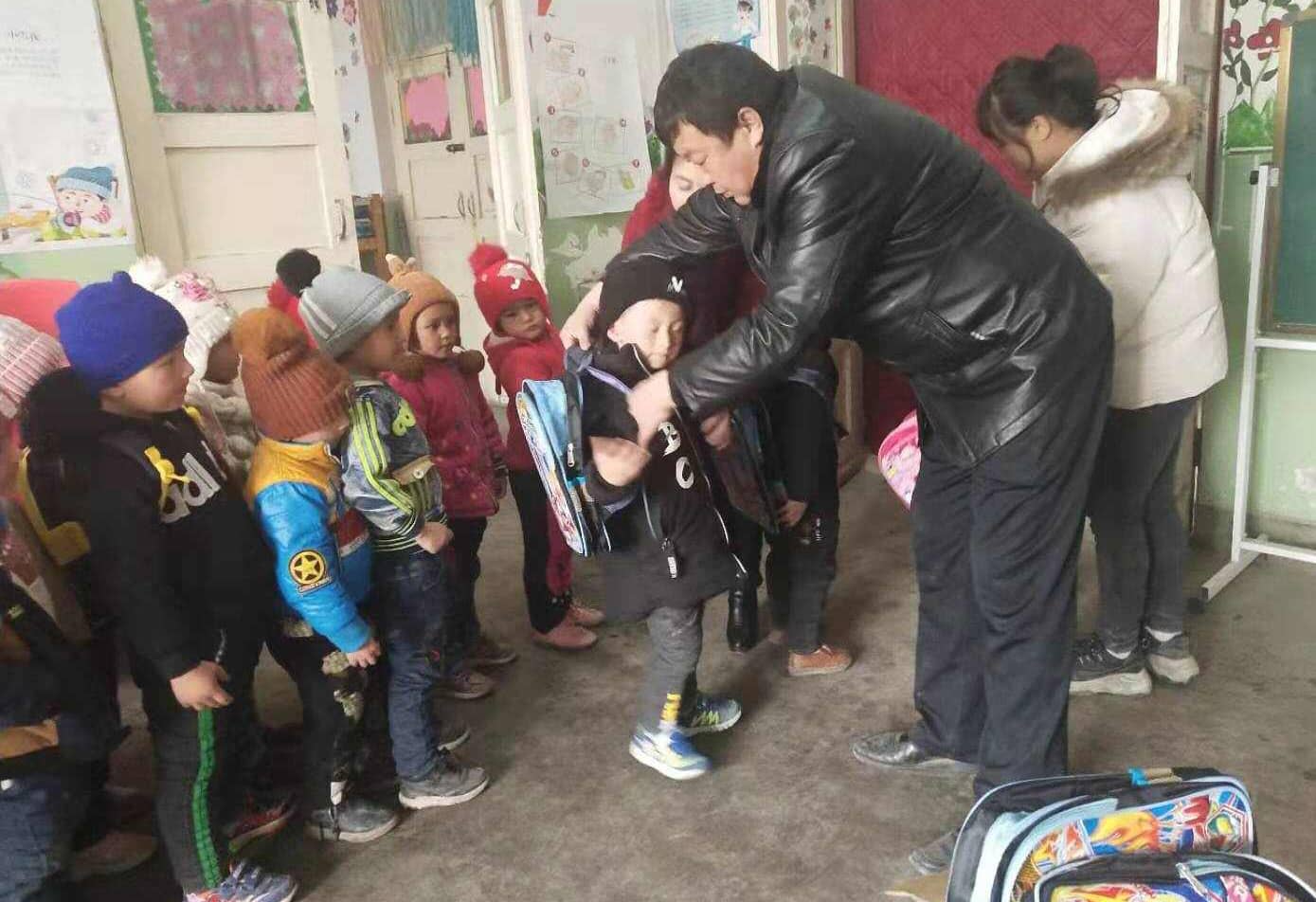 一份耕耘,一份收获。去年底,乌帕尔中心幼儿园对全镇各村幼儿园进行了期终测试,十二村幼儿园小二班顺利通过了测试,且部份小朋友成绩优秀,受到了中心幼儿园的表扬。于是在今年放寒假时,吴志强自费购买了三十二个书包,兑现了对小朋友们的承诺。