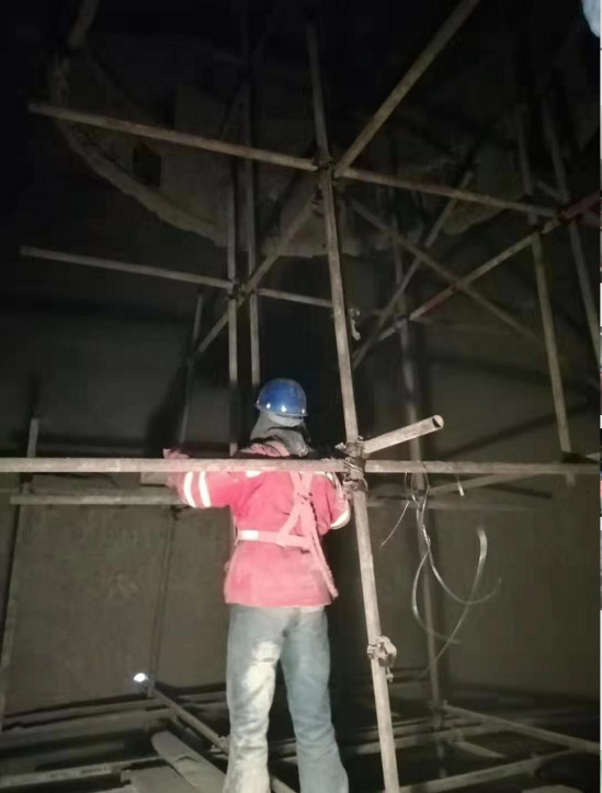 从上述资料图可见,预热器内设立钢管架,架子上铺设木板,同时搭建防护棚,以保护人员安全。检修作业时工作人员站立于钢管架上,凭借安全带防护,防止坠落。若上述安全措施不当,或工作人员未系好安全带,便极易发生高处坠落事故。