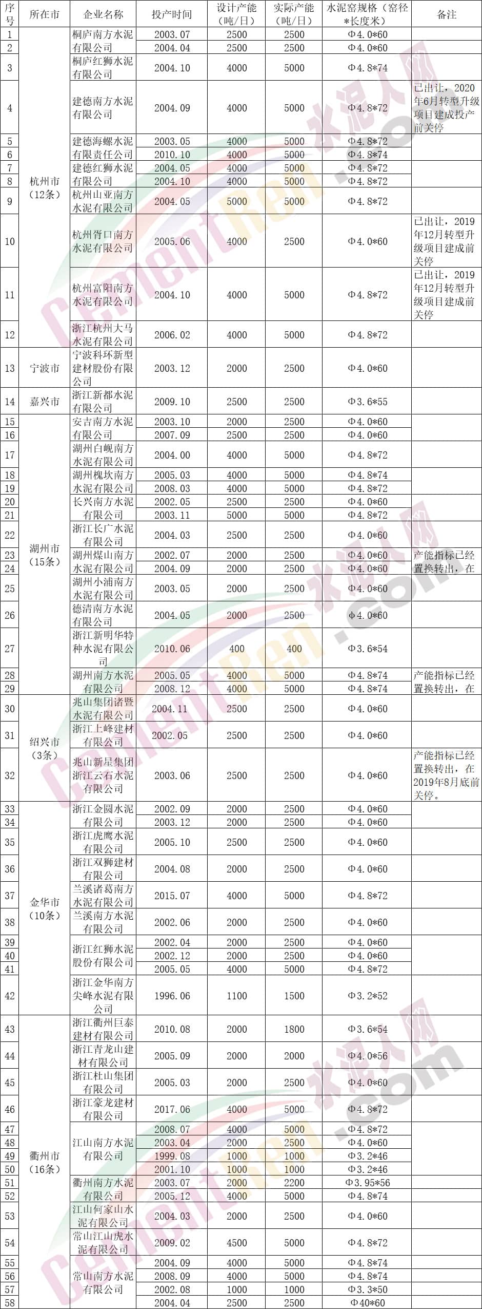 另外,2010年10月投产的建德海螺水泥有限责任公司、2015年7月投产的兰溪诸葛南方水泥有限公司以及2017年6月投产的浙江豪龙建材有限公司三条熟料生产线均为设计产能4000t/d,实际产能5000t/d。