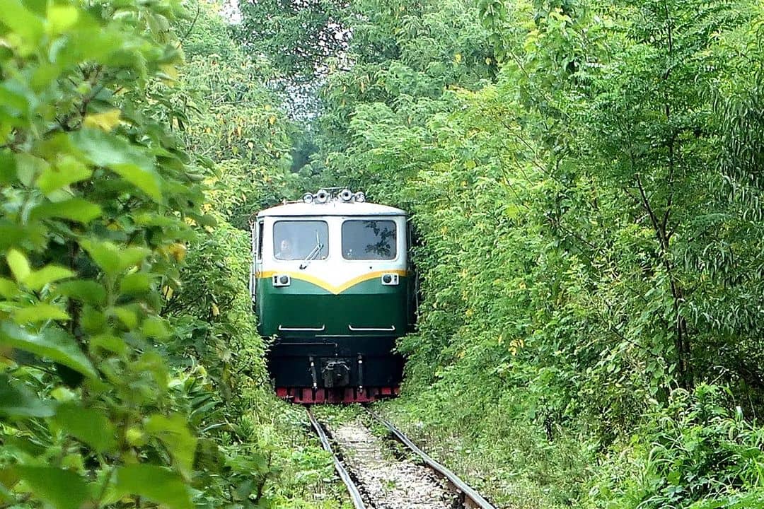 正是因为每天6对的列车从这里经过,它们也让这些植物构成了一个天然的绿色隧道,包络着“小火车”的机车车辆限界。(若不是有列车定期通过,绿树青草也许会彻底掩盖线路)