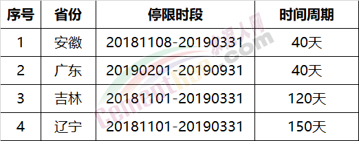 吉林省要求省内所有水泥熟料生产企业(含利用电石渣生产熟料的企业)于2018年11月1日至2019年3月31日全面实行错峰生产,其中承担居民供暖、协同处置城市生活垃及有毒有害废弃物等任务的生产线经批准后可以不进行错峰生产,但应适当降低水泥生产负荷。属地市(州)工信、环保部门要加强对不错峰生产企业落实承担任务情况监督核查,并进行备案。2019年4月1日后,省水泥协会组织企业根据实际情况,可继续开展错峰生产,延续到4月30日。