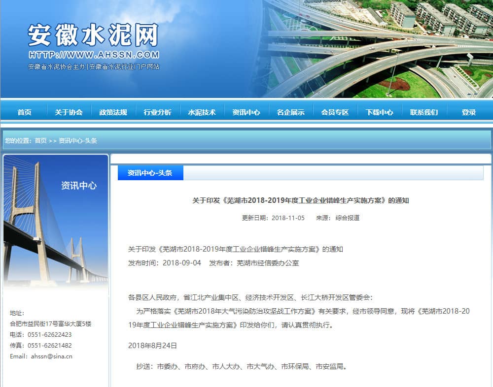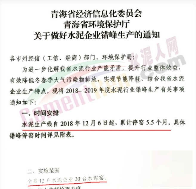 内蒙古自治区经济和信息化委员会、内蒙古自治区环境保护厅联合印发《关于2018-2019年度采暖季水泥企业错峰生产的通知》根据自治区东部地区大多数水泥熟料企业的要求,呼伦贝尔市、兴安盟、通辽市、赤峰市四盟市的水泥熟料企业原则上从2018年11月15日至2019年4月15日全面实行错峰生产,期限5个月。