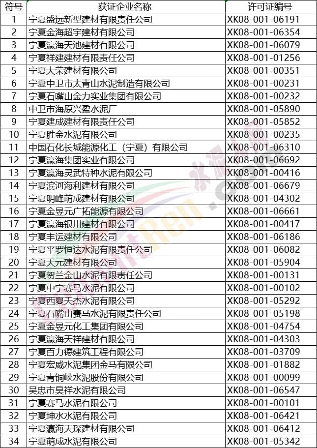 注:因篇幅有限未能列举所有2000余家水泥企业名单。如需详细名单请联系我们,或在下方留言区留言。