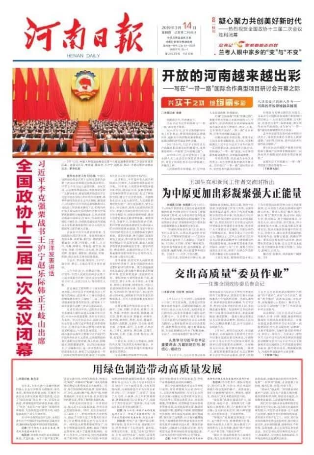 2019年全国两会召开之际,河南日报记者专访了中国联合水泥河南区总裁刘宗虎,解码绿色发展如何带动高质量发展。