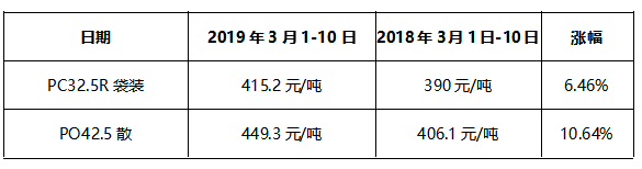 国家统计局流通领域重要生产资料市场价格变动情况相关数据显示本期PC32.5R袋装水泥较上年同期涨了6.46%,PO42.5散装水泥涨幅达10.64%。如下表: