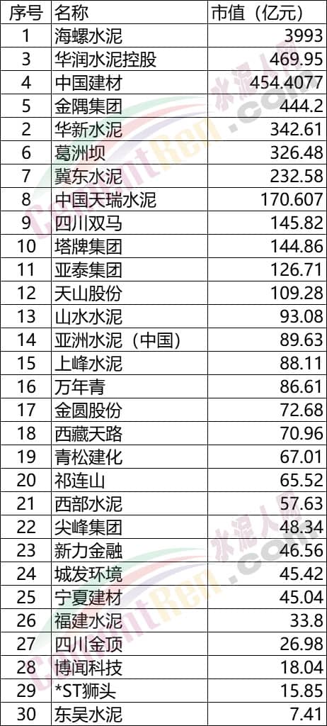 从上市公司市值排名来看,截止3月17日海螺水泥总市值近4000亿元,华润水泥控股、中国建材市值近500亿元,海螺水泥成为水泥行业市值最大的上市企业。