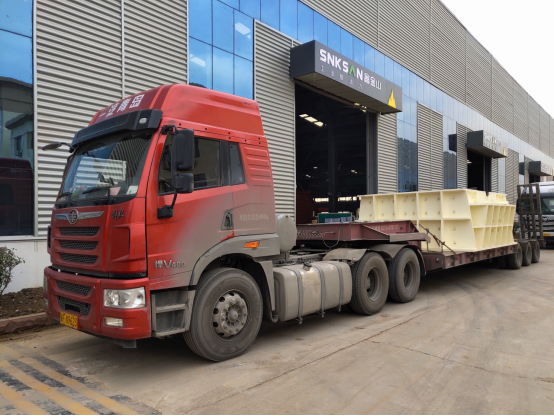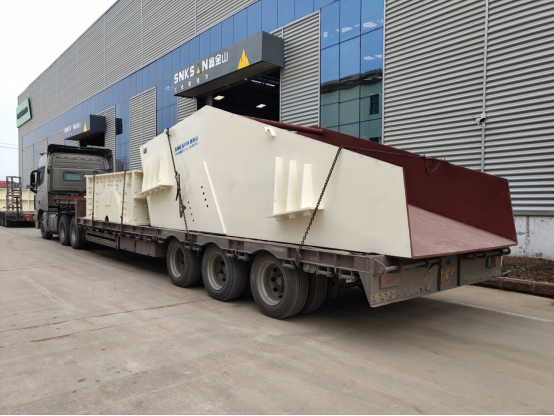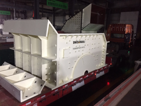 发出的主机设备是鑫金山公司荣获国家首台套认证的专利产品---新型单段锤式破碎机,具有高效节能、绿色环保、石粉量低、一机多用、成品粒型好等特点,深受国内外市场和新老客户的青睐。