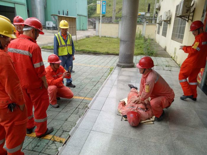 为确保此次演练顺利开展,在模拟演练前,该公司安全部组织参演责任人进行了方案修改与现场预演讨论。本次演练切合该公司工作实际,模拟设备检修人员在受限空间(2号磨机内)进行维修作业,因磨机壁温度过高,一名作业人员突然体力不支晕倒,另一名作业人员有口渴、头晕、乏力等身体不适先兆。